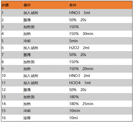 表1 消解實(shí)驗(yàn)步驟